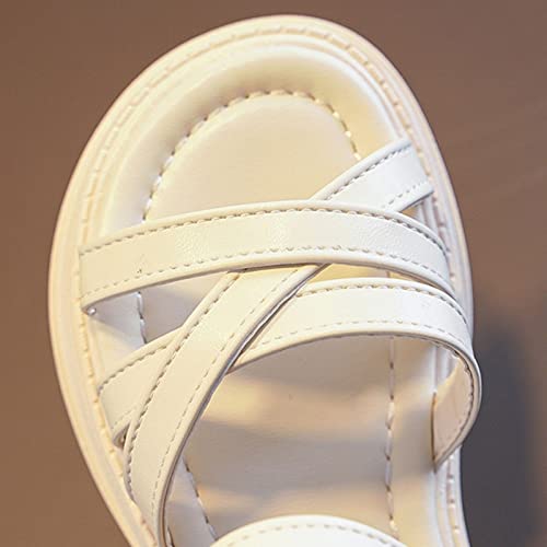 Kids Girls Open Toe Solid Rome Princess Flat Solid Hook & Loop Soft Bottom Outdoor Ankle Straps Dress Sandals 5