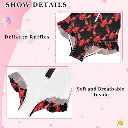 More information about ALAZA Funny Lobster Red Black Girls One Piece Swimsuit Long Sleeve Rash Guard Swimsuits UV 50+ Swimwear Zipper
