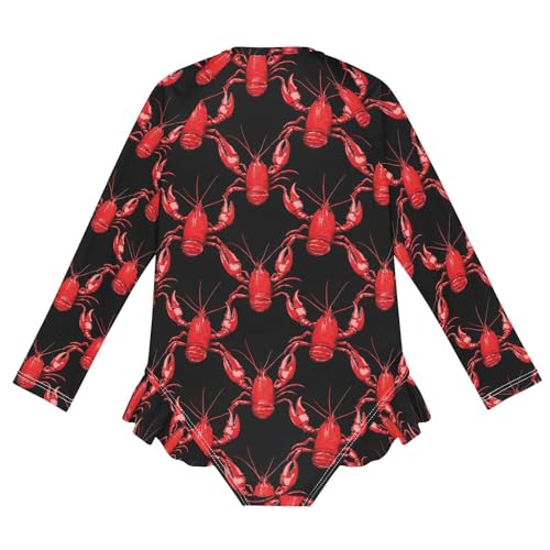 ALAZA Funny Lobster Red Black Girls One Piece Swimsuit Long Sleeve Rash Guard Swimsuits UV 50+ Swimwear Zipper 1