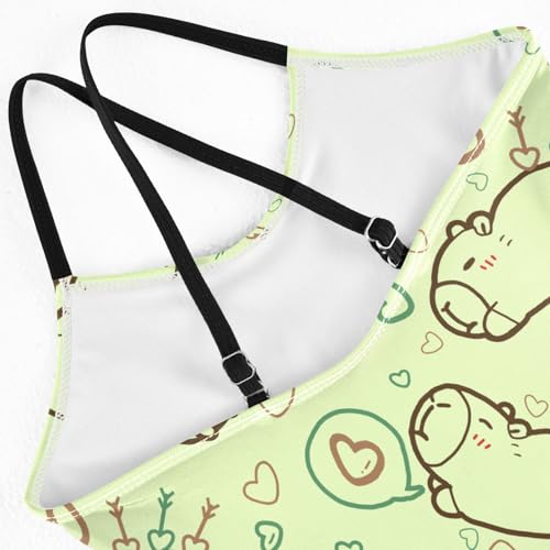 Girls One Piece Swimsuits Cute Capybara with Hearts Green Cute Swimwear Bathing Suits 3-10T 5