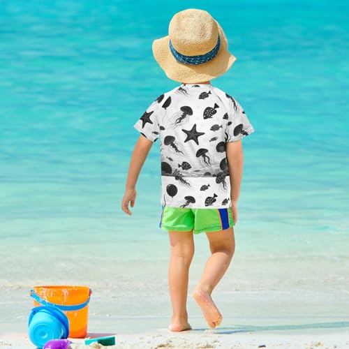 Black White Underwater Fish Short Sleeve Boy Bathing Suit Kids Swimsuits for Girls Rashguard Girls for 3-12 Years ropa de bano para ninas 3