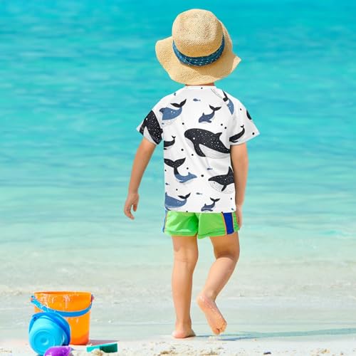 Cartoon Blue Black Whale Short Sleeve Boy Bathing Suit Girls Swimsuit Kids Rash Guard Swim Girls for 3-12 Years Traje de bano para nina 2