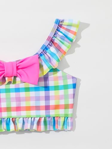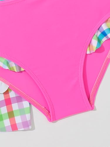 Kids Girls 3 Pcs Swimsuits Plaid Ruffles Sleeve Crop Top Brief with Swimskirts Bathing Suits 6