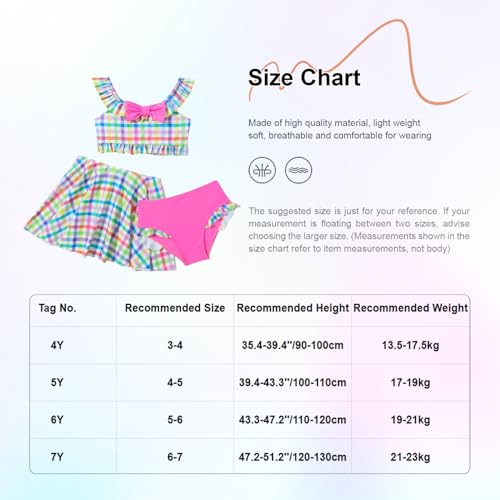 Kids Girls 3 Pcs Swimsuits Plaid Ruffles Sleeve Crop Top Brief with Swimskirts Bathing Suits 4