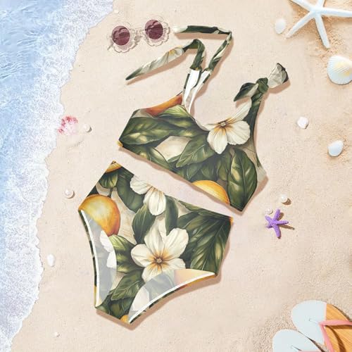 KLL Wood Lemons Girl Two Piece Bikini Set Scoop Neck Swimsuits Swimming Suits Adjustable Shoulder Strap 2