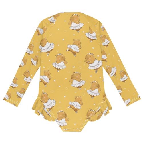 More information about Capybara Dancing Yellow Girls Long Sleeve Swimsuits One Piece Zipper Bathing Suit UPF 50+ Rashguard Swimwear