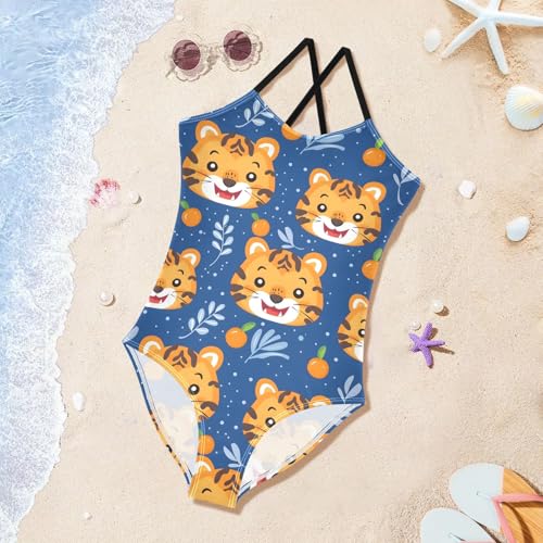 Girls Swimsuit Cute Happy Tiger Face One Piece Swimwear 1