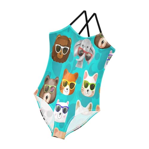 Cute Animals Heads Blue Girls One Piece Swimsuit, Beach Apparel 3-10 Y with Adjustable Shoulder Strap, 3-10 Y 3