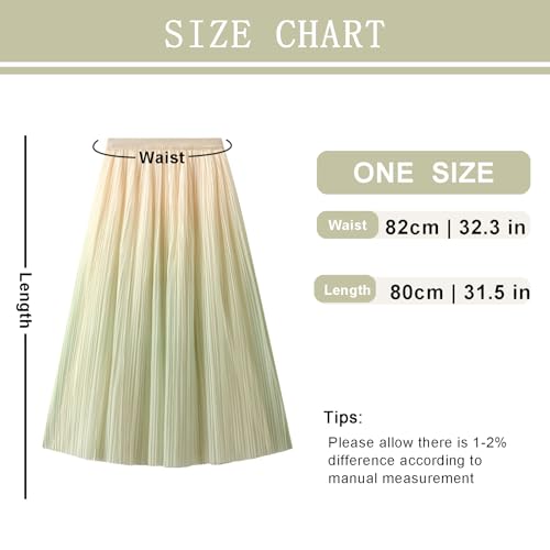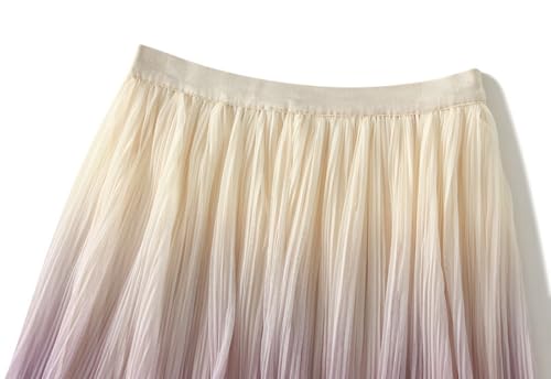 More information about Women's Ombre Pleated Midi Skirt Elegant Gradient Tulle Skirts Elastic High Waist Flowy Skirt Summer Casual Skirts