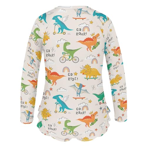 CaTaKu Girls One Piece Swimsuit Dinosaurs Bicycle Bathing Suit Long Sleeve UPF 50+ Rash Guard Swimwear 3-12Y 4