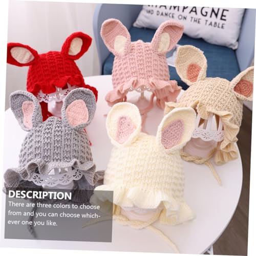 TOYANDONA Yarn Knitted Warm Hat with Bunny Ears Thermal Windproof Winter Cap for Boy Girl Months to Years Breathable Skin Friendly Crochet Cap in Beige 5
