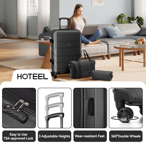 More information about Hoteel Luggage Sets 3 Piece Expandable (4-YEARS WARRANTY) ABS+PC Hardshell Carry On Luggage Airline, Carry on Suitcase with Spinner Wheels & TSA Lock for Travel, Business, Black (20in/DB/TB)