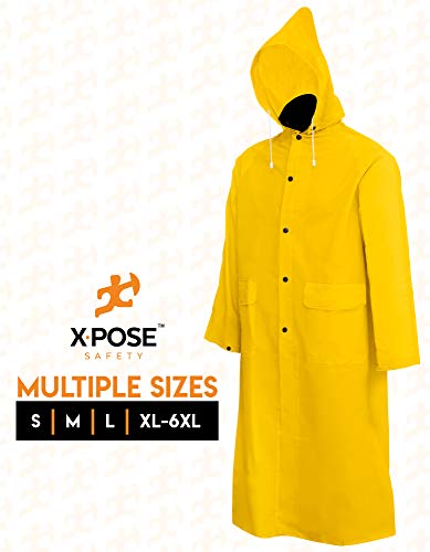 HOT ! Xpose Safety Heavy Duty Yellow Rain Coat .35mm PVC 48in Raincoat Jacket with Detachable Hood, Waterproof, Fishing