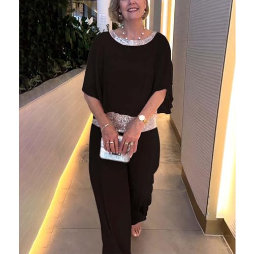 More information about ZOCANIA Sequin Color Block 2 Piece Dresses Formal Pantsuit Women Crewneck Wedding Guest Pant Suits Cocktail Pantsuits