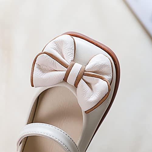 Spring and Summer Girls Casual Shoes Bow Hook Loop Solid Color Comfortable Single Shoes Toddler Girls Running Shoes Beige 4
