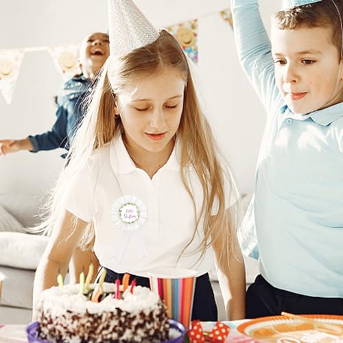 Big Sister Tinplate Badge Pin, White Rosette Big Sister Button for Child's Birthday, Greenery Sister To Be Award Badge Pin, Girl's Birthday/Baby Shower Party Decorations 6