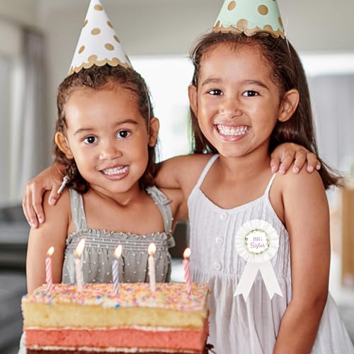 Big Sister Tinplate Badge Pin, White Rosette Big Sister Button for Child's Birthday, Greenery Sister To Be Award Badge Pin, Girl's Birthday/Baby Shower Party Decorations 5