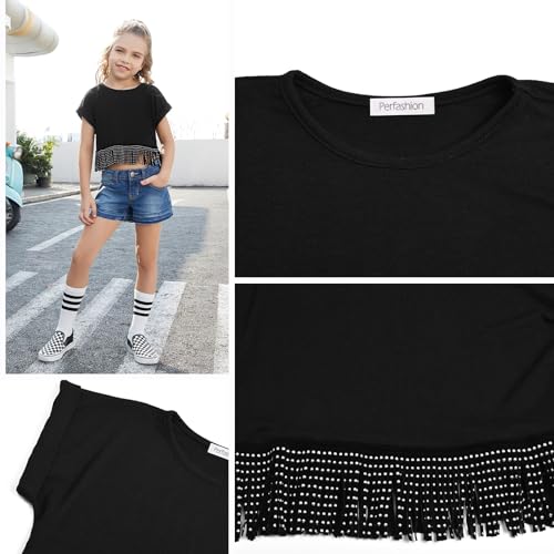 Perfashion Girl's Fringe Hem Short Sleeve Crop Tops Round Neck T Shirt Solid Tee for 4-13 Years 5