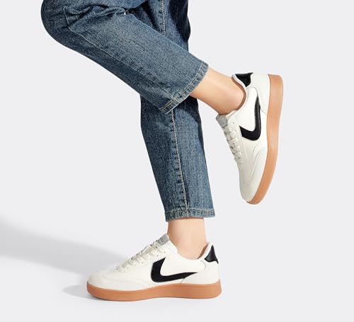 LUCKY STEP Women's Retro Fashion Sneakers Classic Casual Walking Shoes Non Slip Comfort Skate Shoes 5