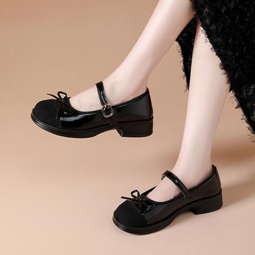 Mary Jane Shoes Women Flats - Women Low Heel Chunky Pumps - Ladies Round Toe Mary Jane Flats Shoes 6