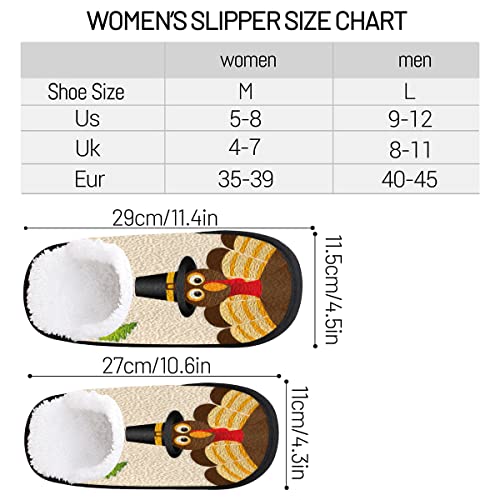 Thanksgiving Turkey Fall Leaves Travel Plush Slipper for Women Men, Turkey Oil Painting Warm Shoes Non-slip Cotton Plush Shoes Indoor Winter Slippers Soft Memory Foam Slipper with Faux Fur Lining 6
