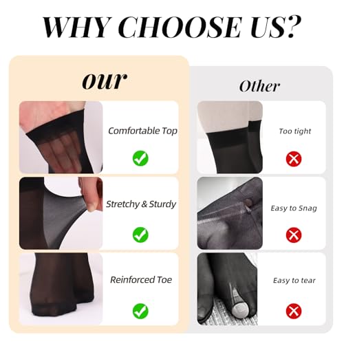 More information about 10 Pairs Ankle Socks for Women 20D Sheer Soft Tight Nylon Hosiery with Reinforced Toe