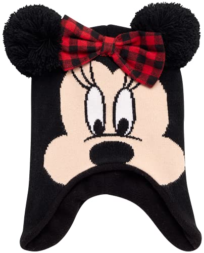Disney Minnie Mouse 2-Piece Beanie Hat Set, Girls Acrylic Knitted Winter Caps with Pom and Earflaps for Kids 3