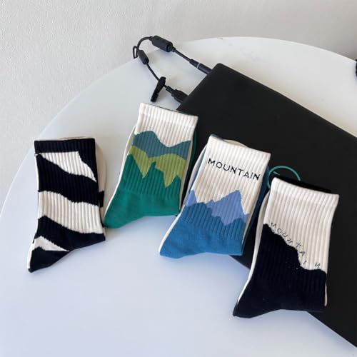 4 Pairs Cotton Fashion Athletics Retro Cute Striped Crew Socks for Women 4