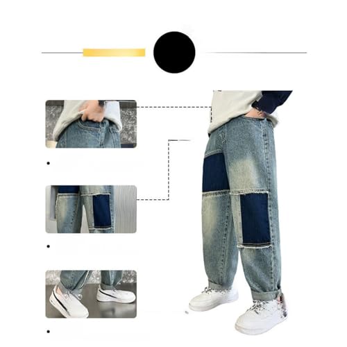 Patchwork Baggy Jeans for Kids Boys Casual Straight Elastic Waist Denim Pants Baggy Blue Autumn School Jeans 7