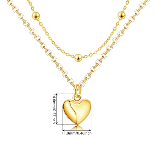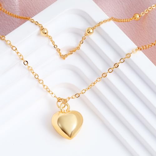 Gold Heart Layered Necklaces for Women - Sterling Silver Adjustable Heart Pendant Necklace Stacked Bead Double Chain Charm Necklace Fashion Gifts for Christmas Birthday for Teen Girls Girlfriend Wife