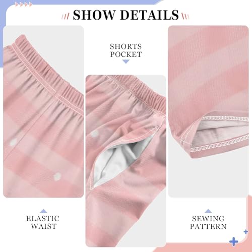 Boys' Pants Pink Check Stripe Long Bottoms Jogger Pants Elastic Waist Trousers with Pockets S-XL