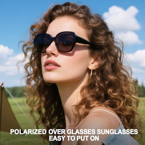 • OVER GLASSES SUNGLASSES FOR WOMEN: These polarized sunglasses are specially designed for those who wear prescription glasses or reading glasses, large frame and wide temples can well wrap your existing glasses, Fit Perfectly. People who with normal vision can also wear them alone.