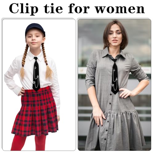 Fabric type: PolyesterCare instructions: Hand Wash OnlyOrigin: ImportedPunk design: Our women's black tie features a exclusive punk design with a silver metal chain, two four-pointed stars and a rhinestone star pendant, dark yet cute. The tie is 32cm/12.6in long. Whether you are attending a party, wearing a uniform or pursuing a casual look, this punk thin tie is a versatile accessory that can enhance your style and show your personality. Black is timeless and can be perfectly matched with a variety of shirts and clothing, making you stand out from the crowdPre-tied women's black tie: This tie is pre-tied and extremely easy to wear. Just put it on your head or put it into your collar, and adjust it to the desired length according to your preferences or clothing. No need for complicated knots, say goodbye to the trouble of not knowing how to tie a tie, and you can easily tie a tie in 3 seconds and go out easily. Whether it is a busy morning or a formal occasion, it is a convenient choiceAdjustable elastic design: The punk metal chain tie uses an elastic band and an adjustable design. The circumference of the elastic band can be adjusted from 36-50cm/14.2-19.7in. Suitable for all women, regardless of body shape. This design is easy to wear and remove, saying goodbye to the traditional inelastic design, and will not mess up your makeup or mess up your hairstyle when you wear and remove it, ensuring convenienceComfortable and durable: This black tie for women is made of high-quality polyester material, which is not easy to wrinkle or deform, and does not require extra frequent ironing. The metal chain is sturdy and stable, not easy to break, fade or corrode, and the rhinestone heart pendant is well made and sparkles in various lights. The overall beauty and lightness ensure that the tie will not cause any discomfort when worn all day, suitable for various occasionsWidely applicable: This womens tie is suitable for various occasions, such as parties, churches, bands, role-playing, offices, ceremonies, etc. It is also a must-have accessory for punk fashion lovers. Whether you are a hardcore punk fan or just want to incorporate some punk elements into your style, it can add a touch of punk style to your wardrobe. Wearing this black women's tie will make you show your charming charm anytime, anywhere Perfect for everyday use. first-class materials and excellent craftsmanship ensure long-lasting durability.