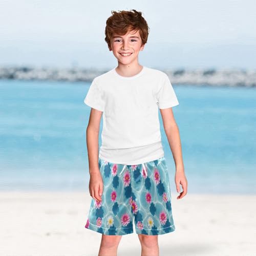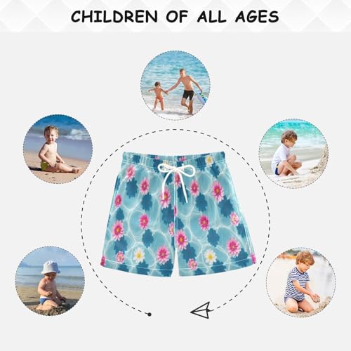 Swim Shorts for Boys, Swimwear for Toddler Boys 2t, Pink White Flowers Water Blue