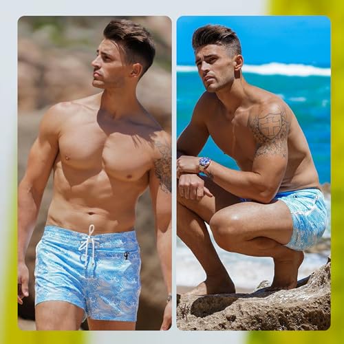 Tucann Men's Trunks 3" Compression Liner fast Dry Zipper Pocket Chlorine Resistan 4 Way Stretch Printed Swim Shorts for Men
