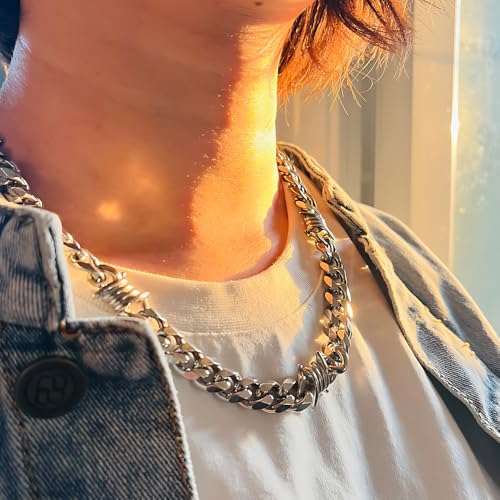 Material: Stainless SteelMetal type: Stainless SteelChain type: CubanGem type: No GemstoneSilver Layered Necklace Size: Barbed wire necklace length is 19.7(50cm) , width of chain is 9mm, lock necklace length is 23.6(60cm), width of chain is 6mm, small padlock pendant size: 0.83x0.0.55 .You can choose to wear them alone or together, both can show your exclusive stylePremium Materia: Layered gothic necklace for men is made of first-class stainless steel, which is strong, durable and comfortable, resistant to corrosion, oxidation resistant, nickel and lead-free, hypoallergenic.Trendy Design: Based on the classic cuban chain, add the gothic barbed wire thorns, it is chunky and heavy,paired with a lock pendant necklace, make you stands out in the crowded.Cool of Gift: Cool punk Hip hop style to Birthdays gift, Graduation gift, Christmas gift, Valentines gift, Halloween gift, Mother's Day gift, Father's Day gift.Multi-Usage: The Layered Lock Chain Choker Necklace is great for Halloween, Gothics theme party, Vintage party, Nightclub, Birthday, Punk Rock Musical Festival, Dating, etc.. Perfect for everyday use. High quality materials and excellent craftsmanship ensure long-lasting durability.