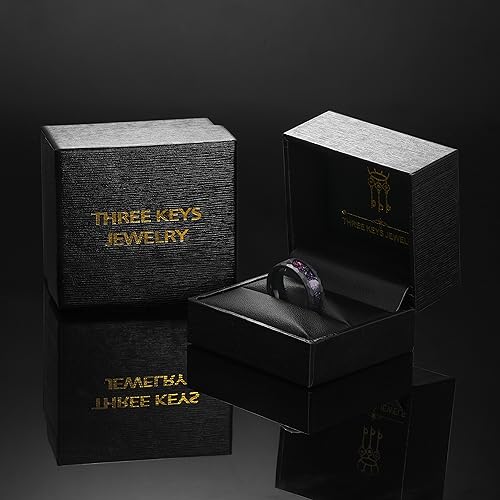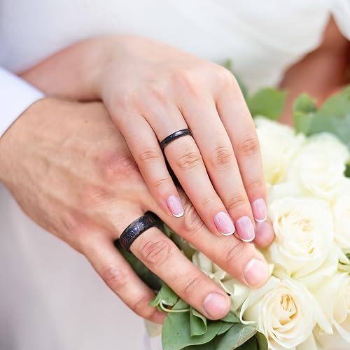 THREE KEYS JEWELRY 8mm Black Tungsten Rings for Men Unisex Hammered Wedding Band Engagement Ring Galaxy Opal Stone Inlay