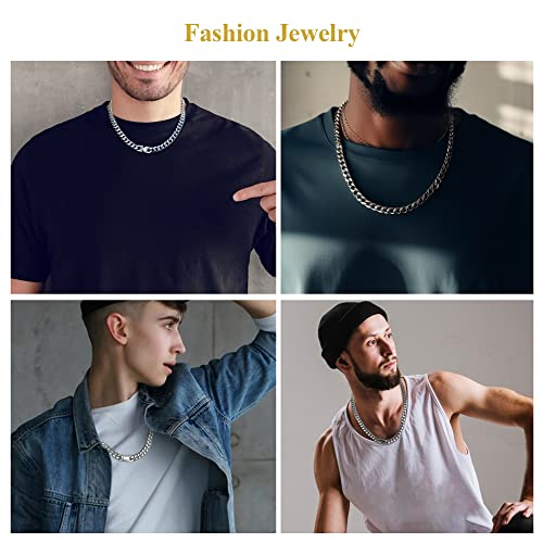 Mens Cuban Link Chain Necklace, Silver Stainless Steel Chain 8MM Hip Hop Granduation Birthday Christmas Anniversary Birthday Jewelry for Dad Son Brother Boyfriend Husband