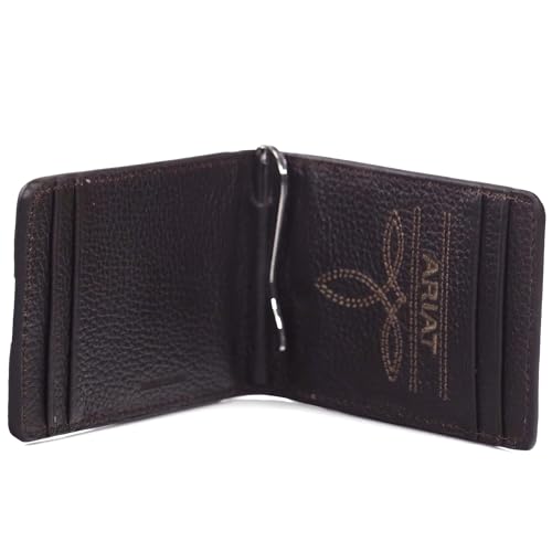 ARIAT Men's Bifold Money Clip Shield Logo Brown Rowdy 6