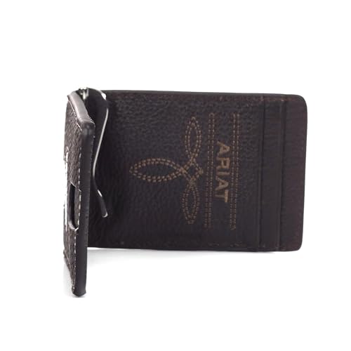 sought-after ! ARIAT Men's Bifold Money Clip Shield Logo Brown Rowdy