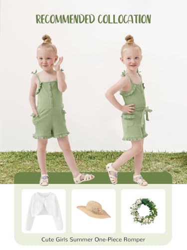 Miipat Toddler Girl Jumpsuit Sleeveless Ruffle One-Piece Romper Baby Girl Ribbed Knit Summer Clothes Button Belt Outfit 1-5T