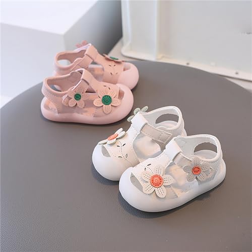 sought-after ! Baby Girls Closed Toe Sandals with Flower Infant Lightweight Rubber smooth Sole Non-Slip Cute Flat Shoes for Toddler