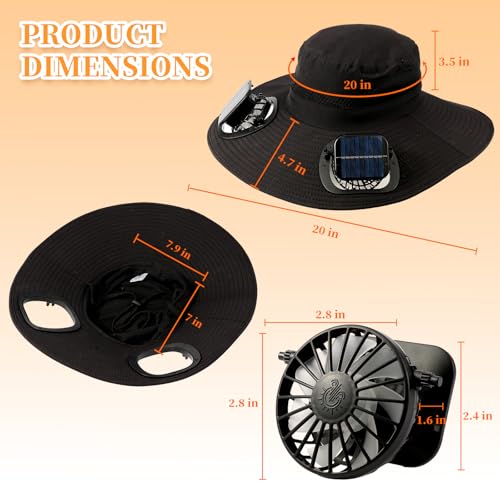 Solar Powered Fan Hat with 2 Removable Fans Wide Brim Sun Hat for Outdoor Fishing, Hiking Gardening, USB Solar Charging 6