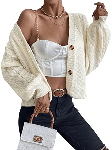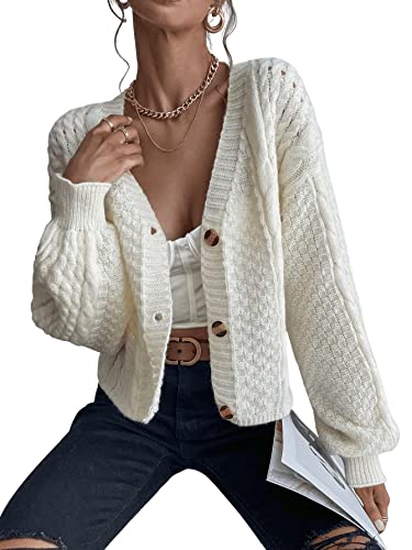 Why Choose SweatyRocks Women's Cable Knit Long Sleeve V Neck Cardigan Drop Shoulder Button Front Sweater?