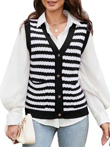 Why Choose Women's Sweater Vests Striped Sweaters Sleeveless Vests Button Up Knit Cotton Tank Tops?