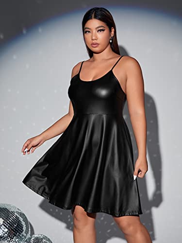 Why Choose WDIRARA Women's Plus Size Spaghetti Strap Pu Leather Flared Hem A Line Cami Dress?