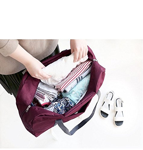 Foldable Travel Duffel Bag Lightweight Luggage Clothes Finishing Storage Bag Water-Resistant Single Shoulder Bag Large Capacity Storage Tote Bag for Gym Travel Camping and Overnight Trips Wine Red 7