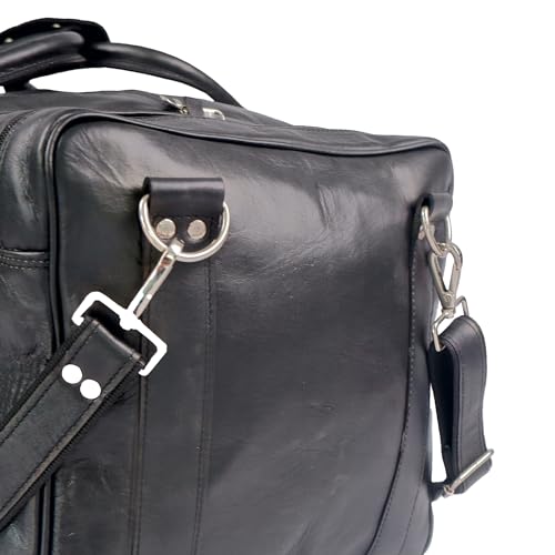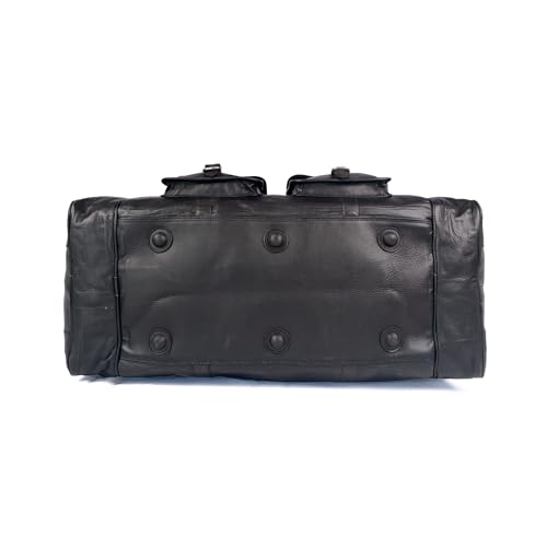PREMIUM MATERIAL: Crafted from genuine goat leather with vintage vintage styling, this duffel bag combines durability with timeless aesthetic.SPACIOUS DESIGN: Features a two front pockets with two compartments, including a main section with interior pockets for organized storage.VERSATILE CARRYING: Equipped with both a shoulder strap and top handle for cozy transport options during travel.SECURE CLOSURE: Zipper closure system ensures your belongings stay protected while maintaining easy access.Size Available - 24L x 10H x 10W Inch 28L x 12H x 12W Inch.