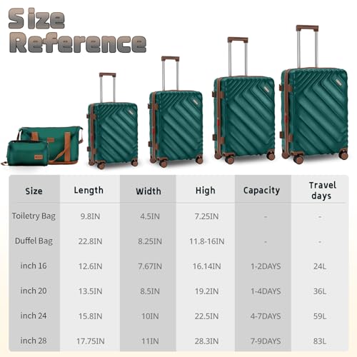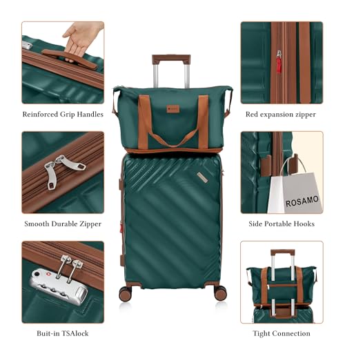 【6 Piece Expandable Luggage Set】Rosamo presents a remarkable 6 piece luggage set that encompasses a 28-inch large suitcase, a 24-inch medium checked luggage, a 20-inch carry-on luggage, and a 16-inch carry-on luggage. The standout feature is that all these three suitcases are expandable, offering you that extra bit of space whenever you need it the most.【Duffel & Toiletry Bag Set】This set is an extended duffel bag and a toiletry bag. Both the duffel bag and the toiletry bag are crafted from gentle, water-resistant polyester fabric. The duffel bag is designed with a back sleeve for effortless attachment to the retractable luggage handle and is equipped with multiple functional pockets, catering to diverse travel requirements.【TSA Lock & first-class Zipper】The Rosamo luggage set comes armed with a securely mounted TSA-approved lock and a fully-lined interior divider featuring organizational pockets. This not only keeps your belongings safe and neatly organized but also gives you peace of mind throughout your journey. The luggage set is adorned with top-notch zippers that are reinforced and upgraded to prevent any splitting, ensuring durability and a worry-free travel experience.【High-Quality ABS+PC Material】Crafted from superior-quality and lightweight ABS material, the Rosamo suitcase set has an additional protective layer on the hard shell, significantly enhancing its impact resistance. This robust construction guarantees that your luggage can withstand the rigors of travel with ease while remaining effortless to handle.【8 Smooth Rolling Silent Spinner Wheels】The Rosamo suitcase sets are equipped with 8 high flat and straight shock-absorbing spinner wheels. This ingenious design ensures quieter and smoother travels. You can relish 360° free rotation and enjoy exceptional directional control, allowing for seamless maneuverability on any surface.【High Quality Telescopic Handle】The Rosamo hard shell suitcases boast an ergonomic 3-stage retractable trolley with TPU handles on the top and sides. This thoughtful feature makes them highly versatile for all kinds of travel scenarios. The sturdy and plush handle system ensures effortless usage and efficient handling, even in crowded places. Perfect for everyday use. High quality materials and excellent craftsmanship ensure long-lasting durability.