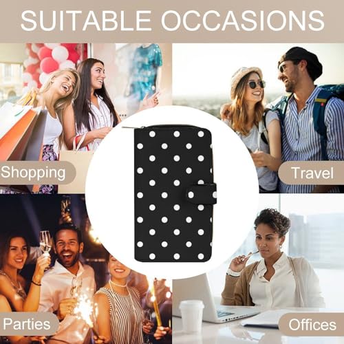 Why Choose Polka Dot Black White straightforward Pattern Leather Wallets Large Capacity Zipper Pocket Card Holder with ID Window?
